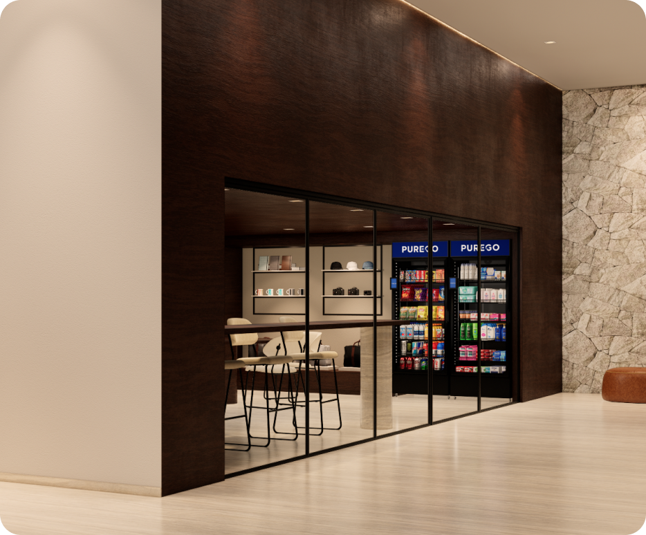 PUREGO opère des micro-marchés intelligent dans des environnements modernes. Pris en charge de bout en bout, de l’installation à l’exploitation quotidienne. Vous élevez votre espace, sans aucune implication opérationnelle.